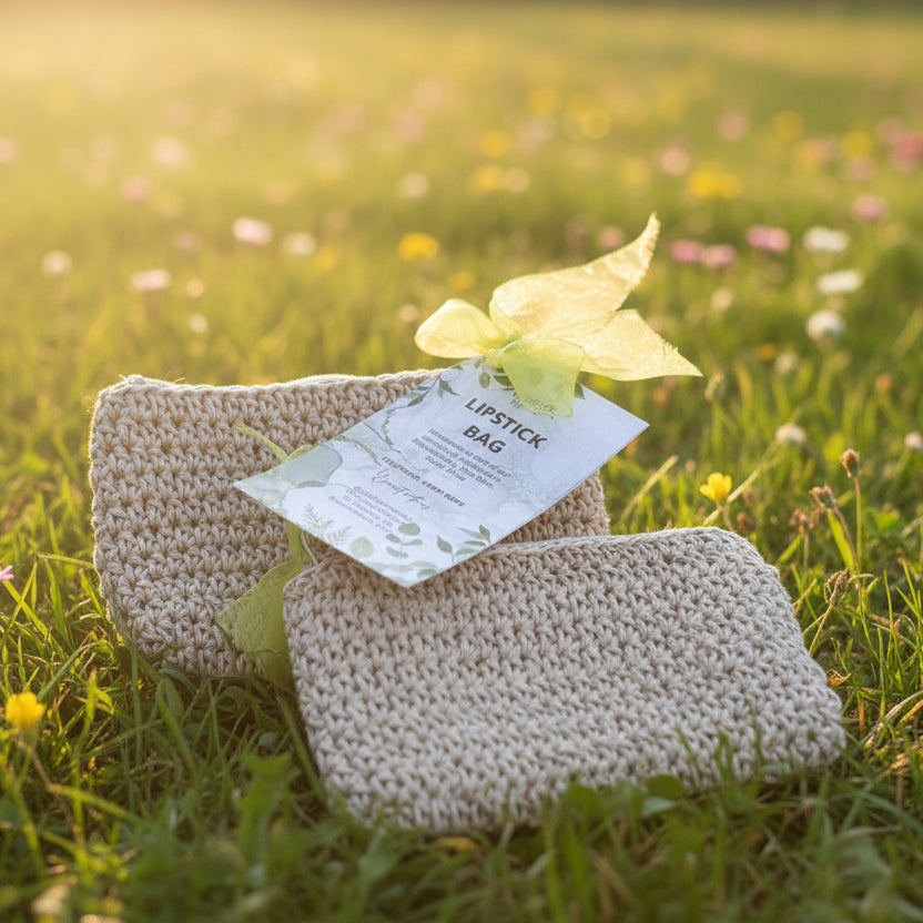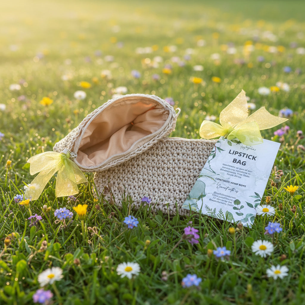 Keep your lip essentials beautifully organized with our handcrafted 100% hemp rope lipstick bag. Perfectly sized at 90mm x 160mm, this eco-conscious accessory combines natural elegance with practical design, featuring a secure zipper closure and protective lining for your favorite lip balms, lipsticks, and small skincare treasures.